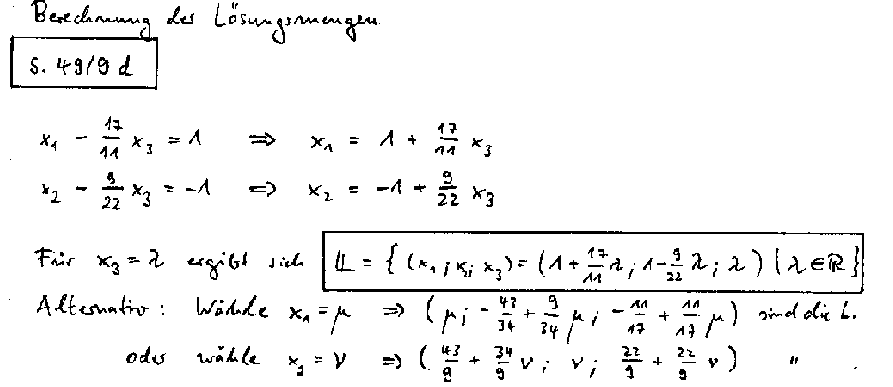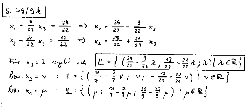 es gibt unendlich viele Lösungen, die letzte Zeile gehört zu der allgemeingültigen Gleichung |